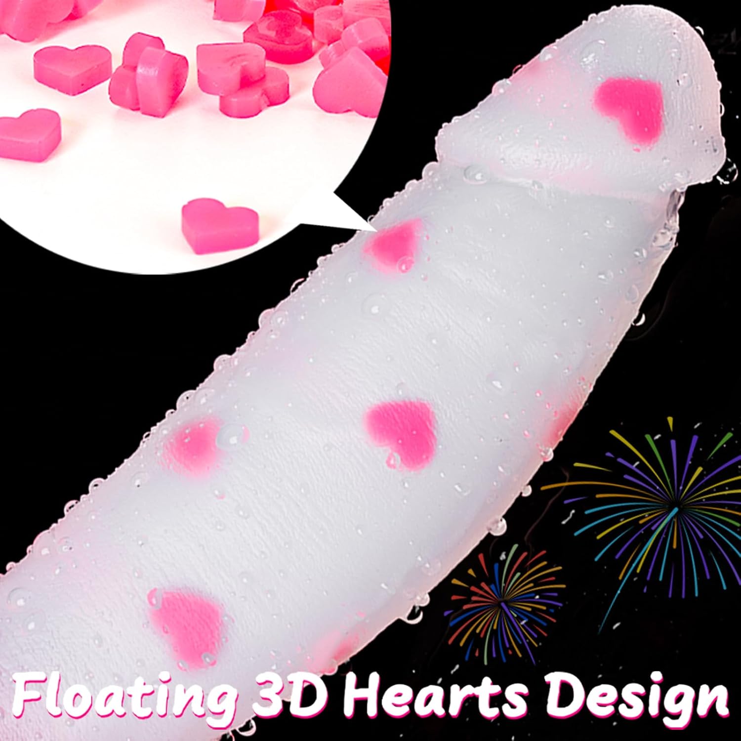 - Unique Clear Love Heart Fantasy Dildo: Embrace playful fantasy with this g spot dildo, featuring adorable pink hearts embedded throughout its elegant design; The soft, slender glans ensure an easy and comfortable start, while the gradually thickening shaft and gentle curves provide a perfectly snug fit, targeting your most sweet spots; Finished with a charming pink base, this jelly dildo dildo is crafted for those who crave delightful fantasy!